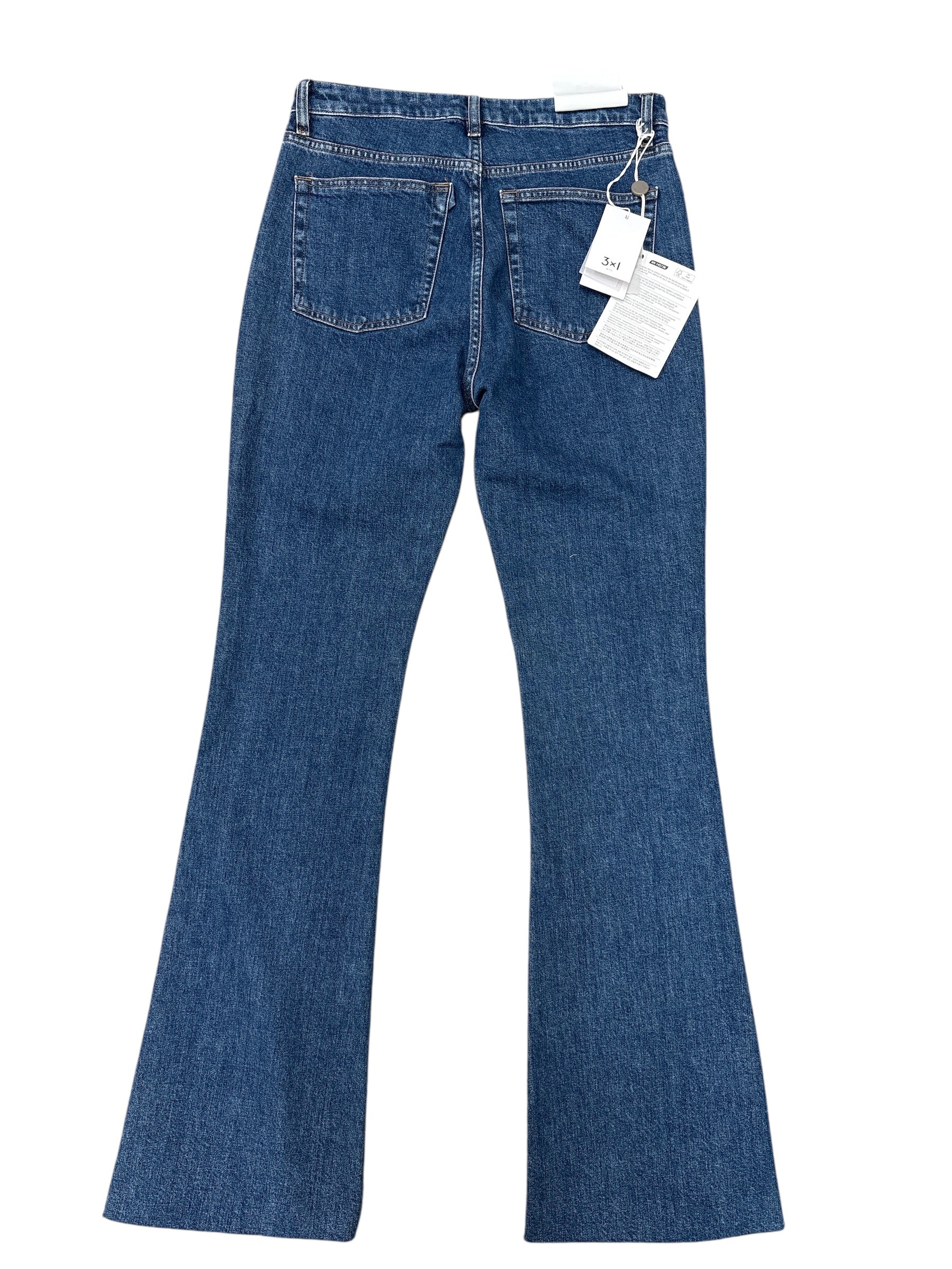 3x1 blue high-rise bel bottom jeans.